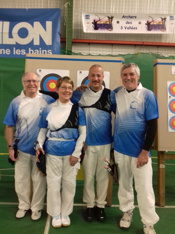Ce week-end des 8 et 9 décembre, les Archers des Trois Vallées de Digne les Bains proposaient ce concours en salle, qualificatif pour le Championnat de France. Une centaine d’archères et archers venus de de toute la région Provence Alpes Cote d’Azur, se sont alignés sur le pas de tir, lors des trois départs. En arc olympique, en arc à poulies ou en arc nus, c’est à la distance de 18 mètres sur blason de 40cm ou sur tri-spot que ces compétiteurs ont démontré leur talent. Parmi eux quatre concurrents des Archers des Ecrins de l’Argentière-la-Bessée ont participé à cette rencontre. Tous les quatre pratiquent en arc olympique avec de très bon résultats. Ainsi Béatrice Magnin dans la catégorie sénior 2, se classe 3ème; Alain Sanchez, le seul des quatre à tirer sur tri-spot, monte sur la plus haute marche du podium, dans la catégorie sénior 2. Quant à Miguel PEIRERA également en catégorie sénior 2 se classe 3ème. Enfin Jean-Pierre Roger, en catégorie sénior 3, se hisse 1er. Un classement par équipe mixte donne les Archers des Ecrins premiers avec 1533 points sur 1800 possibles; c'est Béatrice qui sera la gardienne de la coupe. Félicitations à tous les quatre et merci aux Archers des Trois Vallées pour leur accueil et leur parfaite organisation. Mais rien n’est jouer quant aux qualifications du Championnat de France, puisque le prochain week-end, c’est à Barcelonnette que se disputera l’un des derniers concours.”