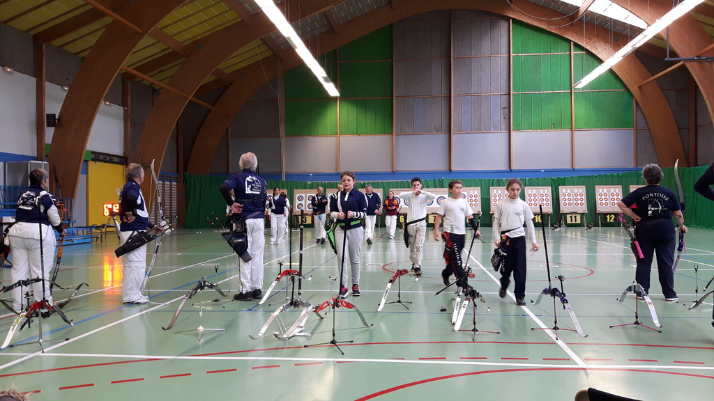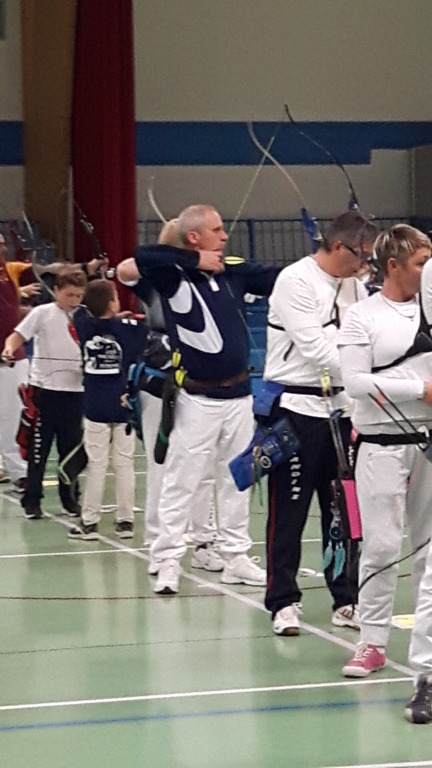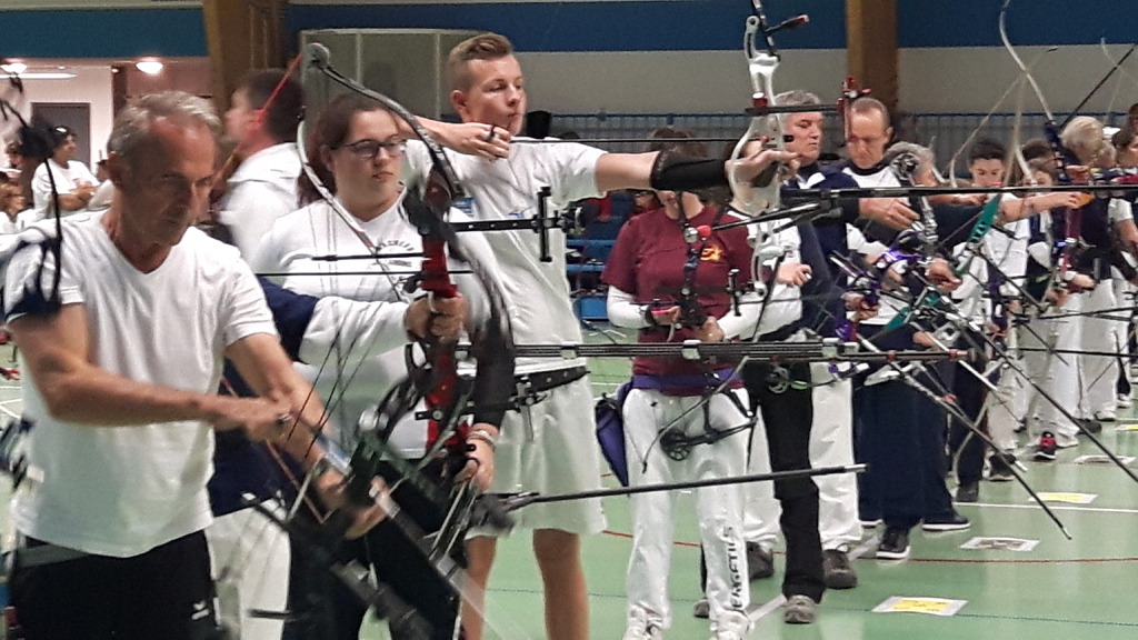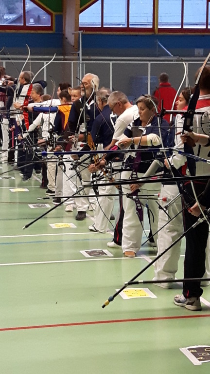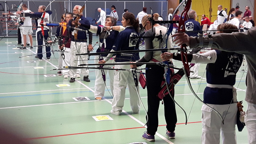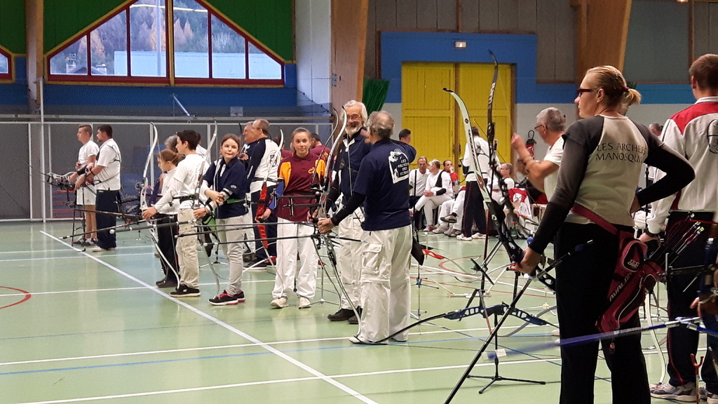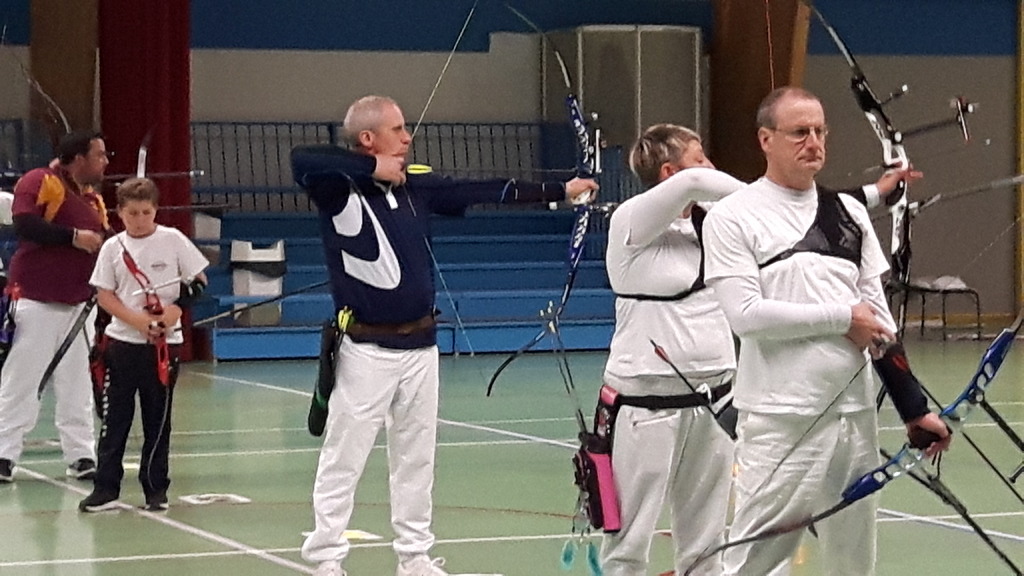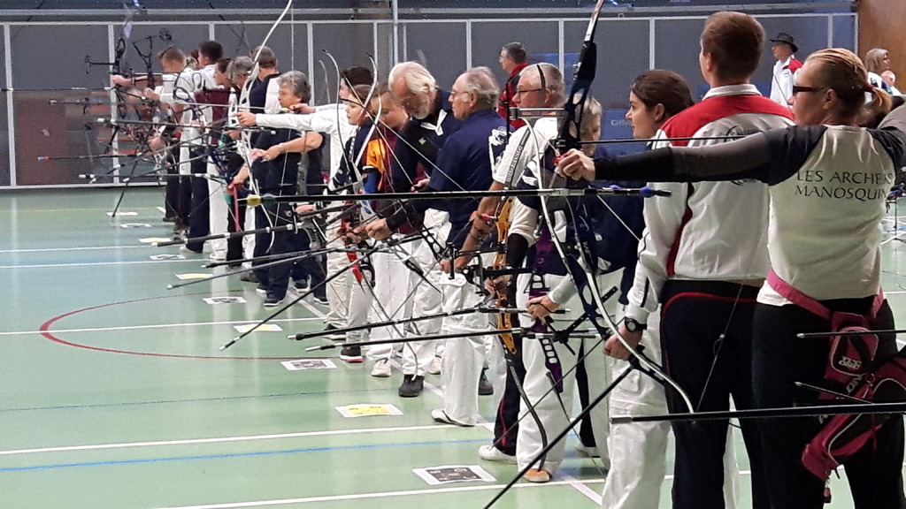 Ce weekend des 19 et 20 novembre, se tenait la quatrième manche de tir à l'arc, qualificatif pour le Championnat de France d'une part part, et pour le Trophée des Alpes, d'autre part. La Première Compagnie d'Arc Barcelonnette en Ubaye organisait ce concours in door, dans la salle Omnisports Jean Fernandez. Ainsi, quatre vingt treize archères et archers se sont retrouvé sur le pas de tir avec trois départs; l'un le samedi après-midi et les deux autres le dimanche. Et c'est parti pour 2 fois 10 volées de trois flèches, avec un rythme AB/CD, CD/AB. A noter que si une 4ème flèche est décochées, l'arbitre responsable éliminera la meilleurs des 4!! A la distance de 18 mètres, c'est sur blason anglais de 60cm pour les jeunes, et pour toutes les autres catégories, sur blason de 40cm voire sur tri-spot vertical pour les arcs à poulies, ou pour celles et ceux qui pratiquent en arc classique et qui en font la demande. Petit rappel, le 10, centre du blason de 40cm ou le tri-spot, en jaune, ne mesure que 4cm et le 9, le plus grand cercle en jaune, que 8cm! Et pour les archers et archères qui préfèrent concourir sur tri-spot, toute flèche en dehors du bleu est considérée pour zéro point; en langage familier, cela se nomme une "paille ou une brosse"! Parmi tous les 93 compétiteurs, 11 des Archers des Ecrins de l'Argentière-la-Bessée ont fait ce déplacement sous une météo agréable! Ainsi nos deux jeunes archers, Morgan CYTE catégorie minime se classe 1ère, Quentin BRAYE , benjamin, se classe 3ème, tous deux en arc classique. A noter que tous les deux améliorent encore et toujours leurs scores à comparer à la précédente compétition. Chez les dames, Béatrice MAGNIN , vétéran, monte sur la 1ère marche du podium, Christianne MASSON catégorie super-vétéran se classe 2ème ; ces deux archères pratiquant la discipline en arc classique, c'est à dire avec viseur et avec système de stabilisateurs; par contre, Jeanine DELESPAUL, notre doyenne, en arc à poulies, super-vétéran, se classe 1ère. Jennifer GENREAU, senior en arc classique, préoccupée par des évènements extérieurs, ne réalise pas un score à la hauteur de ses performances habituelles; elle a déjà oublié cette compétition pour se concentrer sur la prochaine. Passons aux garçons avec Ruiz-Miguel PEREIRA-ANDRADE, sénior, récupère une très belle 2ème place, Hubert Brielle , vétéran monte sur la 2ème marche du podium, Alain SANCHEZ, vétéran également se classe 1er, Gibert VALLAURI, super-vétéran se classe 3ème; enfin Jean-Pierre ROGER, même catégorie, se classe 1er, tous les quatre en arc classique. Un classement par équipe mixte (une archère + un archer toute arme confondue), donne les Archers des Ecrins 2ème avec 1021points sur 1200 possibles juste après Gap avec 1049 points.