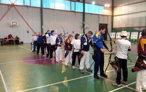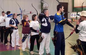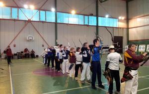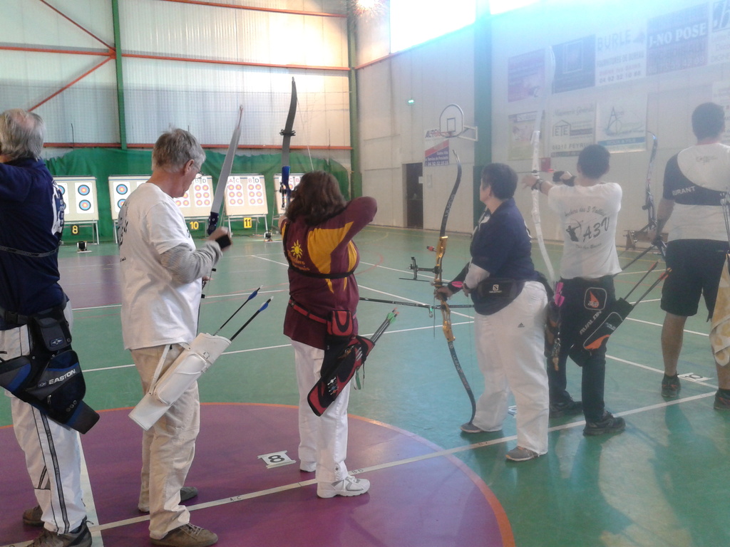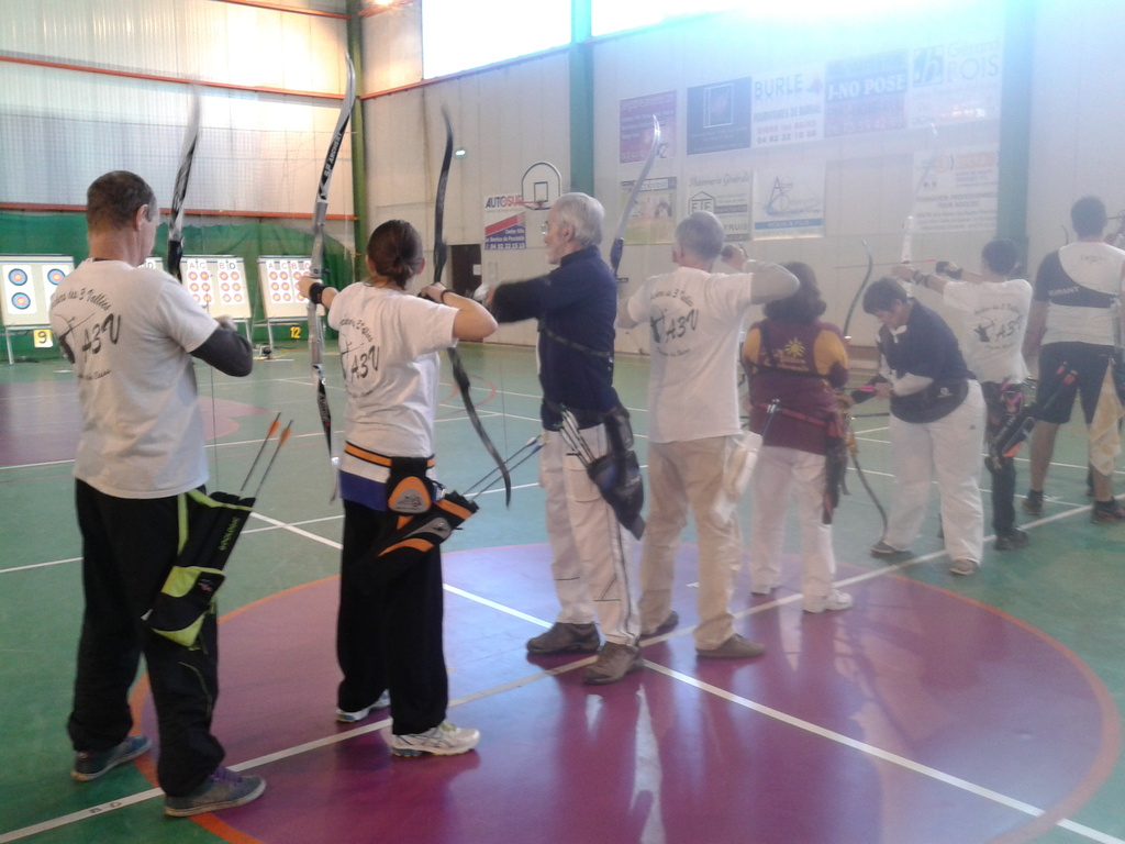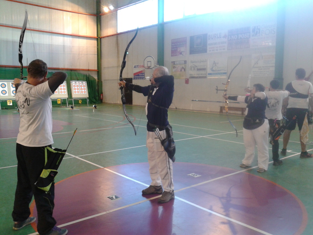 C'est dans la salle omnisport Alice Milliat que le club des Archers des 3 Vallées de Digne-les-Bains organisait, les 6 et 7 décembre, pour la première fois, un Concours Qualificatif pour le Championnat de France ainsi que la dernière manche du Trophée des Alpes. Sous la responsabilité des trois arbitres Fabrice, François-Xavier et Francis, c'est un gros succès puisque 96 archers et archères de toute la région PACA se sont rencontrés dans ce magnifique gymnase. Cette compétition à 18 mètres avec 2 séries de dix volées de trois flèches a remporté un vif engouement, surtout auprès des quatre compétiteurs de la Compagnie des Archers des Ecrins de l'Argentière-la-Bessée qui ont fait le déplacement. Et les résultats ne se sont pas fait attendre. Ainsi Christianne, vétérante dans sa cathégorie, monte sur la plus haute marche du podium en arc classique. Pour les garçons, Alain, vétérant, retrouve sa première place, Jean-Pierre, super-vétérant, est deuxième, tous les deux en arc classique; quant à Gilbert, lui aussi en super-vétérant, il se classe deuxième en arc nu, c'est-à-dire sans viseur, à la méthode dite "à l'apache". La prochaine compétition se tiendra à Manosque avec le Trophée Provencal pour les jeunes archers le 25 janvier 2015, et un qualificatif pour les adultes; nous en reparlerons . Félicitations aux archers de Digne pour l'organisation et l'accueil lors de ce premier concours , qu'ils ne manqueront pas de réitérer en 2015 et suivantes....."