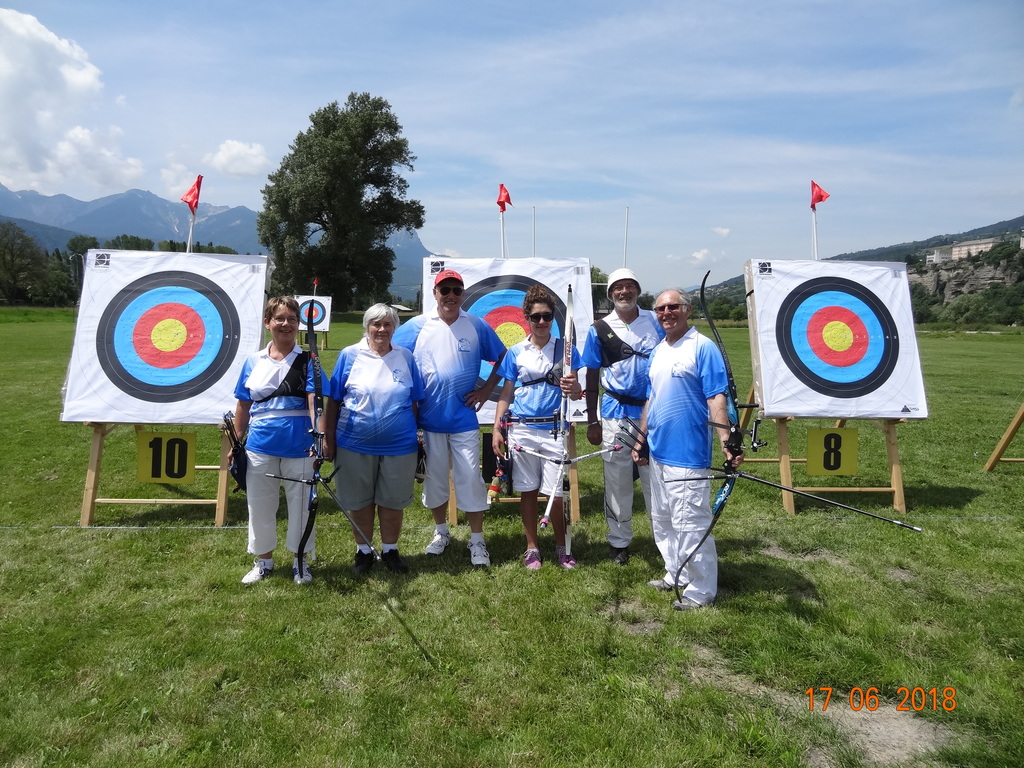 Nouvelle manche de cette saison, les Archers Embrunais organisaient leur compétition au stade de rugby, sous le Roc. Cinquante cinq archers se sont positionnés pour les deux départs: l’un le matin et le second, l’après midi. Cette rencontre s’inscrit dans le cadre des qualifications pour le Championnat de France FITA, c’est à dire à 70 mètres, distance olympique, mais également pour les qualificatifs Départemental FITA 05 et Départemental FITA 04. Cette compétition englobait également les archers et archères qui ne pratiquent que le tir Fédéral, soit à une distance de 50 mètres. Pour les deux disciplines, le blason est le même soit 122 cm. Pour information, le jaune du blason ne mesure que 24 cm, pour marquer 9 points, et dont le centre ne fait que 12 cm pour marquer 10 points. Les tirs se font suivant 2 fois 6 volées de 6 flèches dans un temps de 4 minutes.