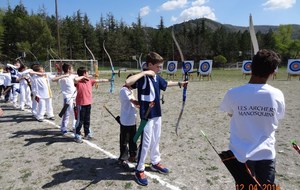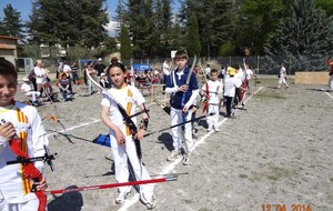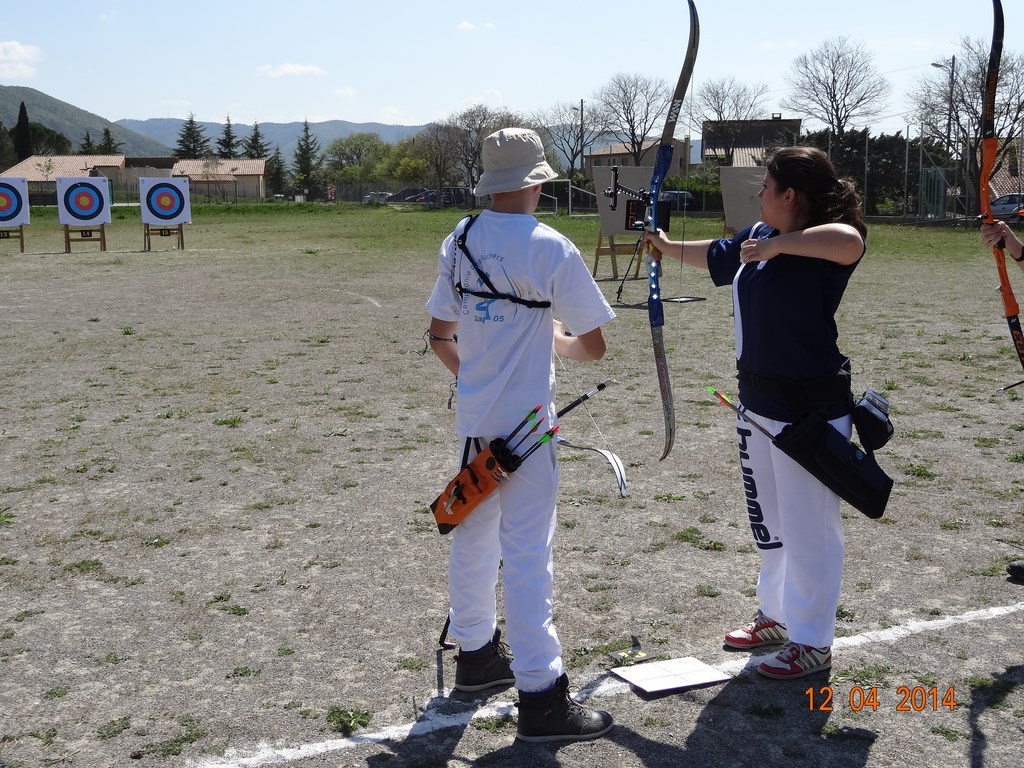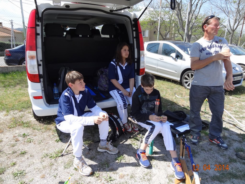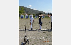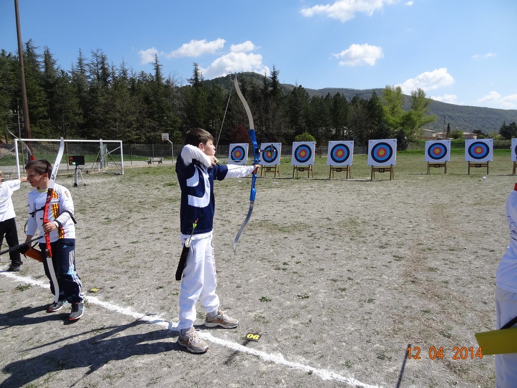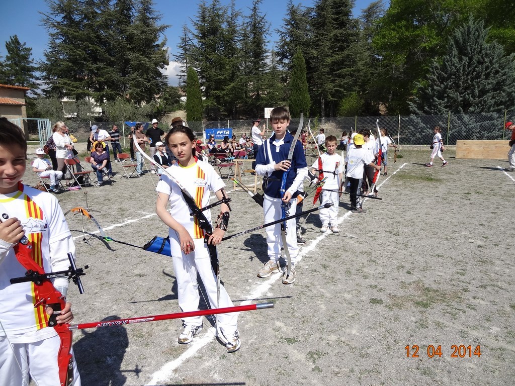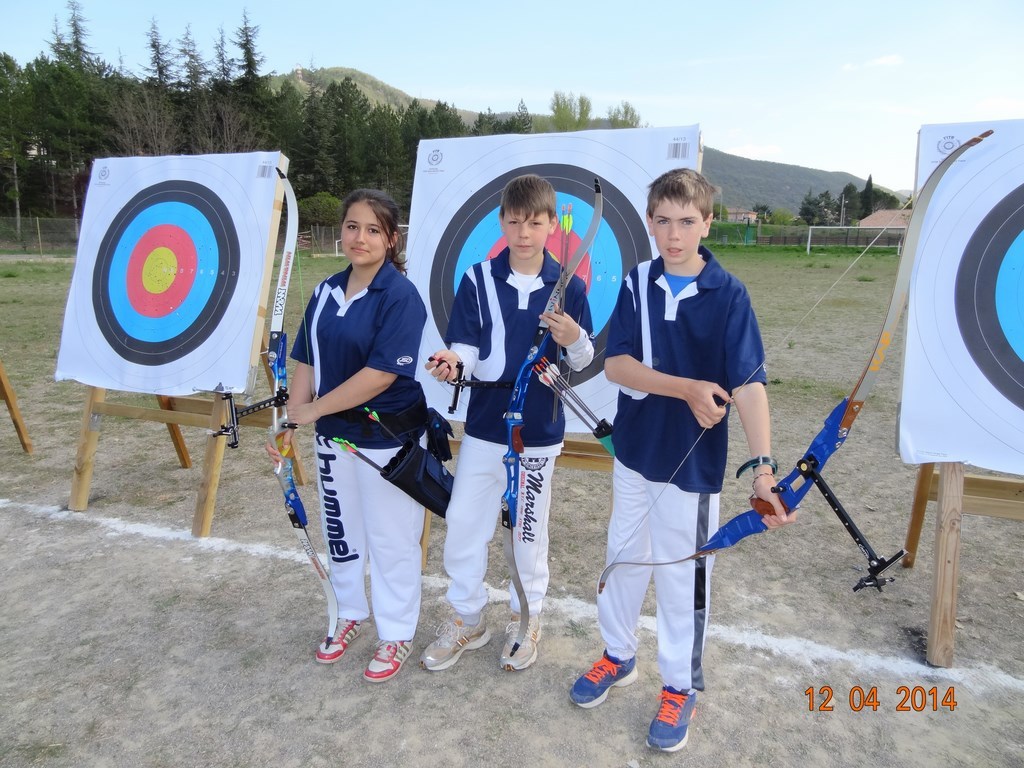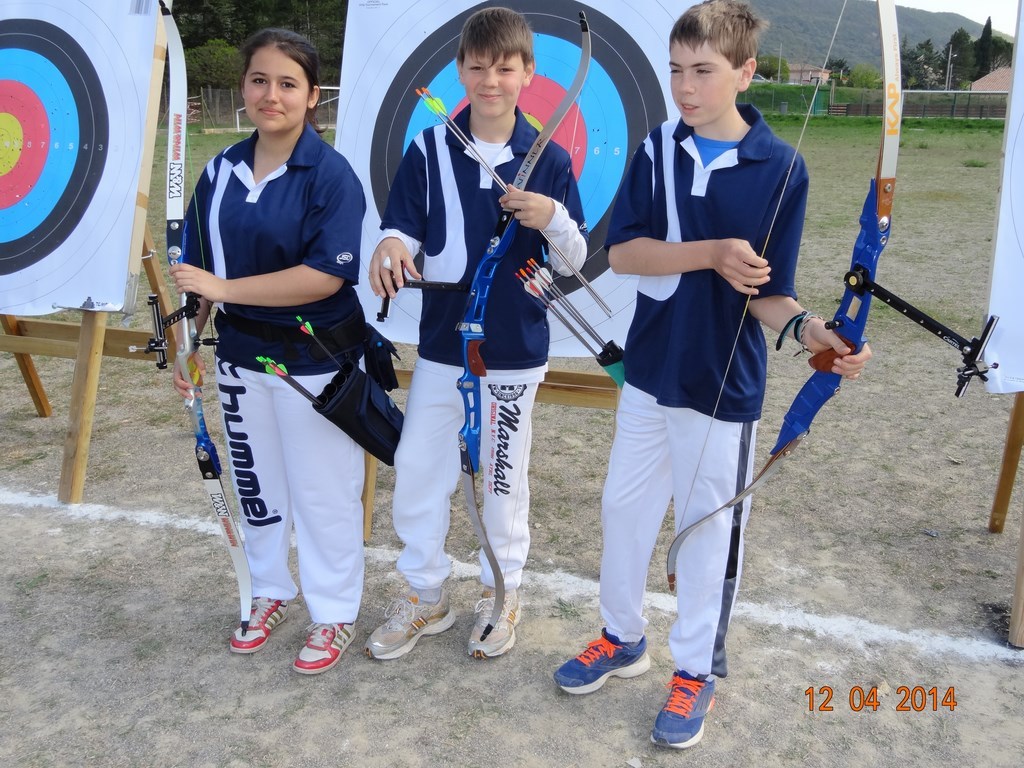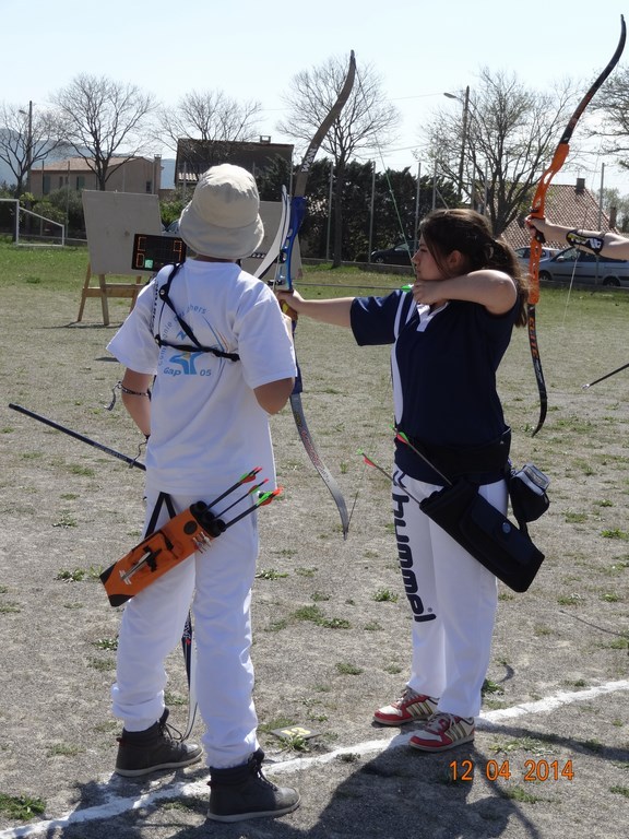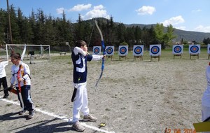Les Archers du Soleil organisaient le 12 avril à L'Escale, un mini-fédéral, troisième étape du Challenge Jeunes 2014 du CD04. Une archère et 2 archers représentaient la Compagnie des Archers des Ecrins de l'Argentière-la-Bessée. Les tirs se déroulaient sur blasons de 122cm en 2 séries de 6 volées de 3 flèches. Ainsi, ce premier "entrainement-compétition", a permis à Eugénie, cadette, de découvrir toutes les joies, toutes les surprises et toutes les subtilités d'un premier concours sur une distance de 30 mètres; elle terminera avec tous les honneurs mais s'en souviendra longtemps. Quand à nos deux benjamins, Aldric et Thibault, sur la distance de 20m, ils terminent respectivement 2ème et 4ème. Félicitations à toutes et tous; pour mémoire le concours précédant avait pris place à Digne sur un parcours 3D,et sous une pluie battante!