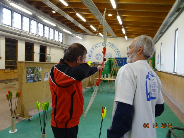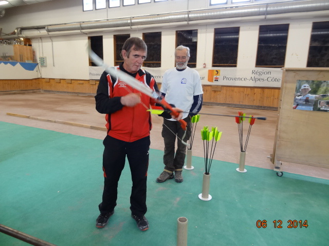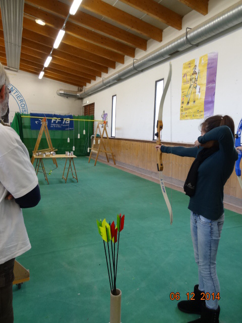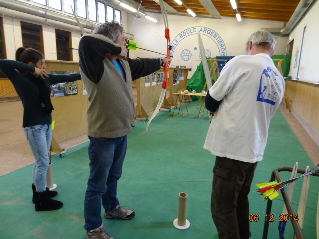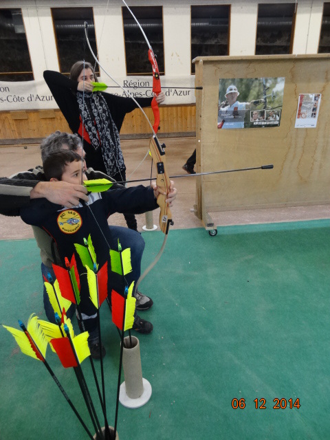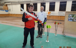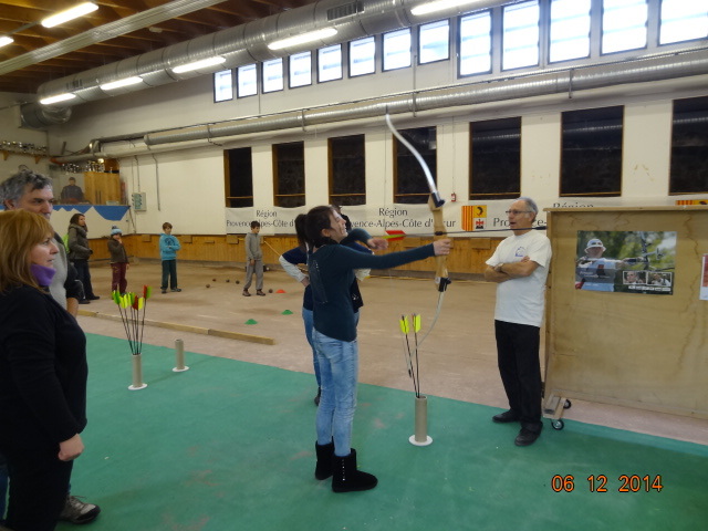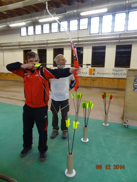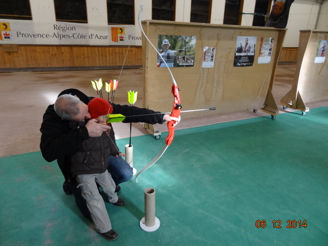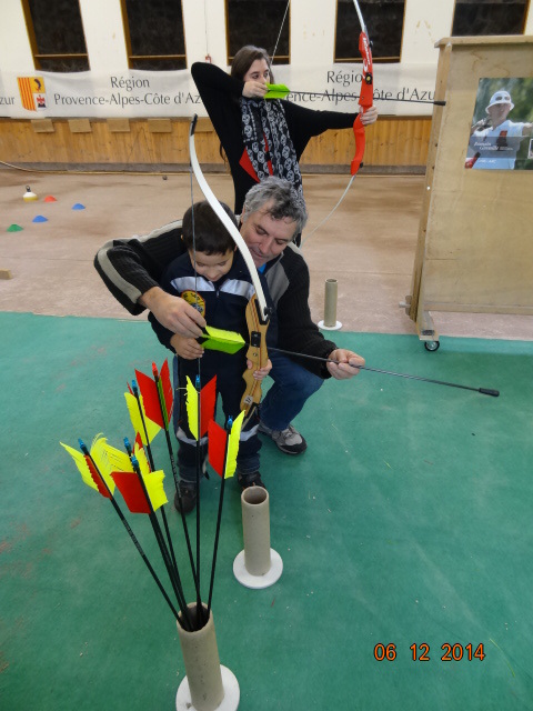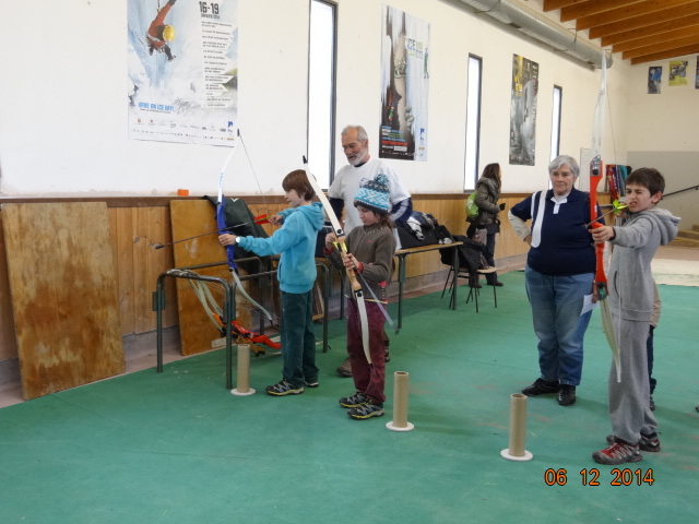 C'est le 6 décembre 2014, le jour de la St Nicolas, que les Archers des Ecrins ont participé pour la première fois à cette grande fête du Téléthon. Organisé par les pompiers de l'Argentière et en association avec plusieurs clubs spotifs, les jeux se sont principalement déroulés au gymnase du Quartz: piscine et plongée, escalade, foot, tennis, parcours sportifs pompier, boules, tir à l'arc.......... Et une trentaine de participants se sont familiarisé avec l'arc, les flèches, de simples boites et bouteilles en guise de cibles.........Vivement 2015 pour réitérer ces jeux.