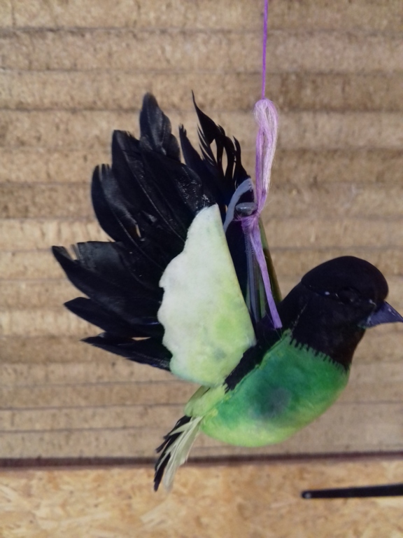 Un oiseau, vivant, était attaché en haut d'un mat d'une douzaine de mètres.